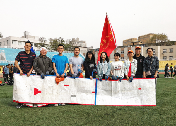 在运动会的开幕式上,学院运动员方队由64名学生与25名教师组成,学生方队手持绘制浑南校区五大建筑馆的布面宽扇,迈着整齐划一的步伐,高喊嘹亮铿锵的口号,向全校师生展现了学院昂扬的体育风貌与良好的专业素养。